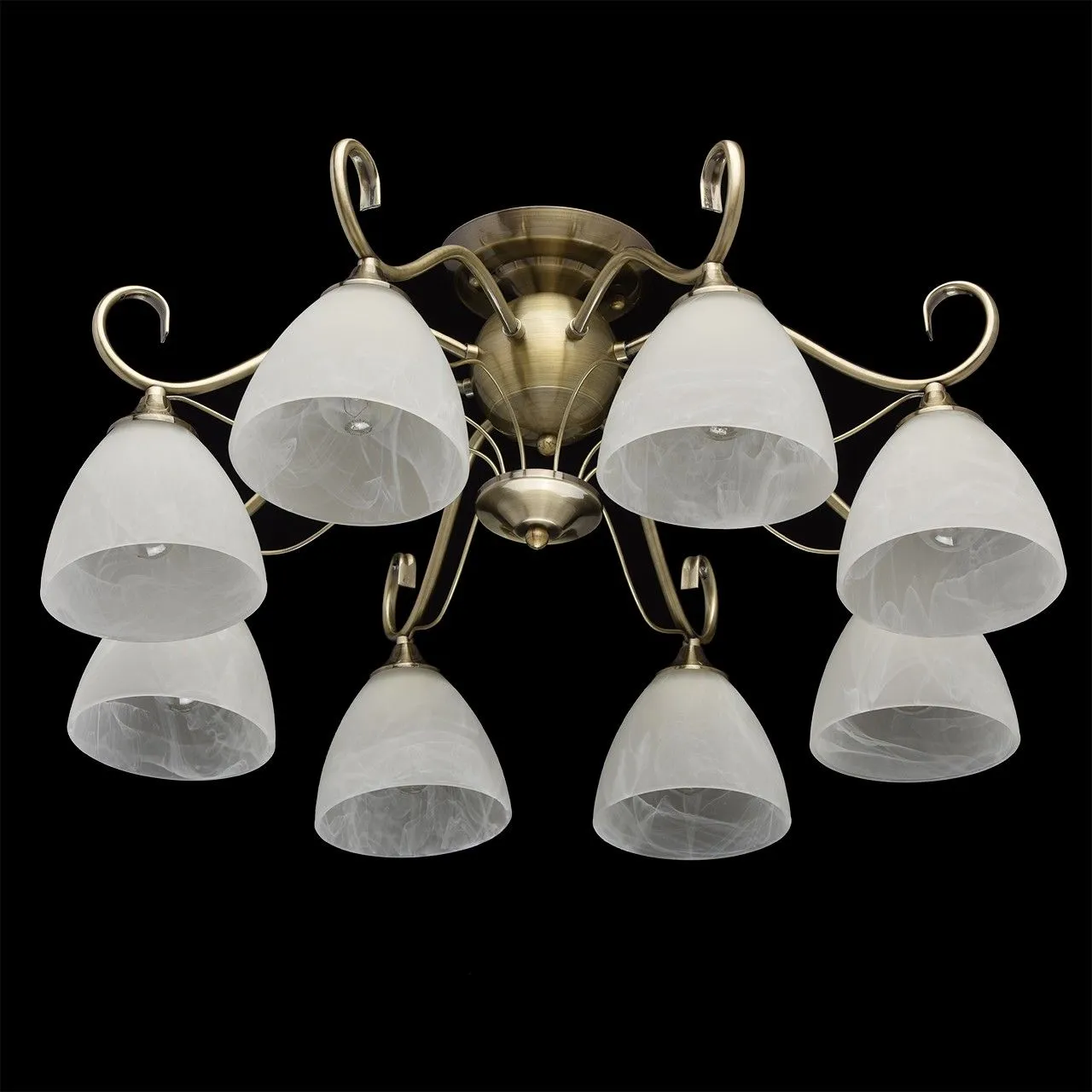 Металлическое основание цвета античной бронзы. Плафоны - алебастровое стекло.
