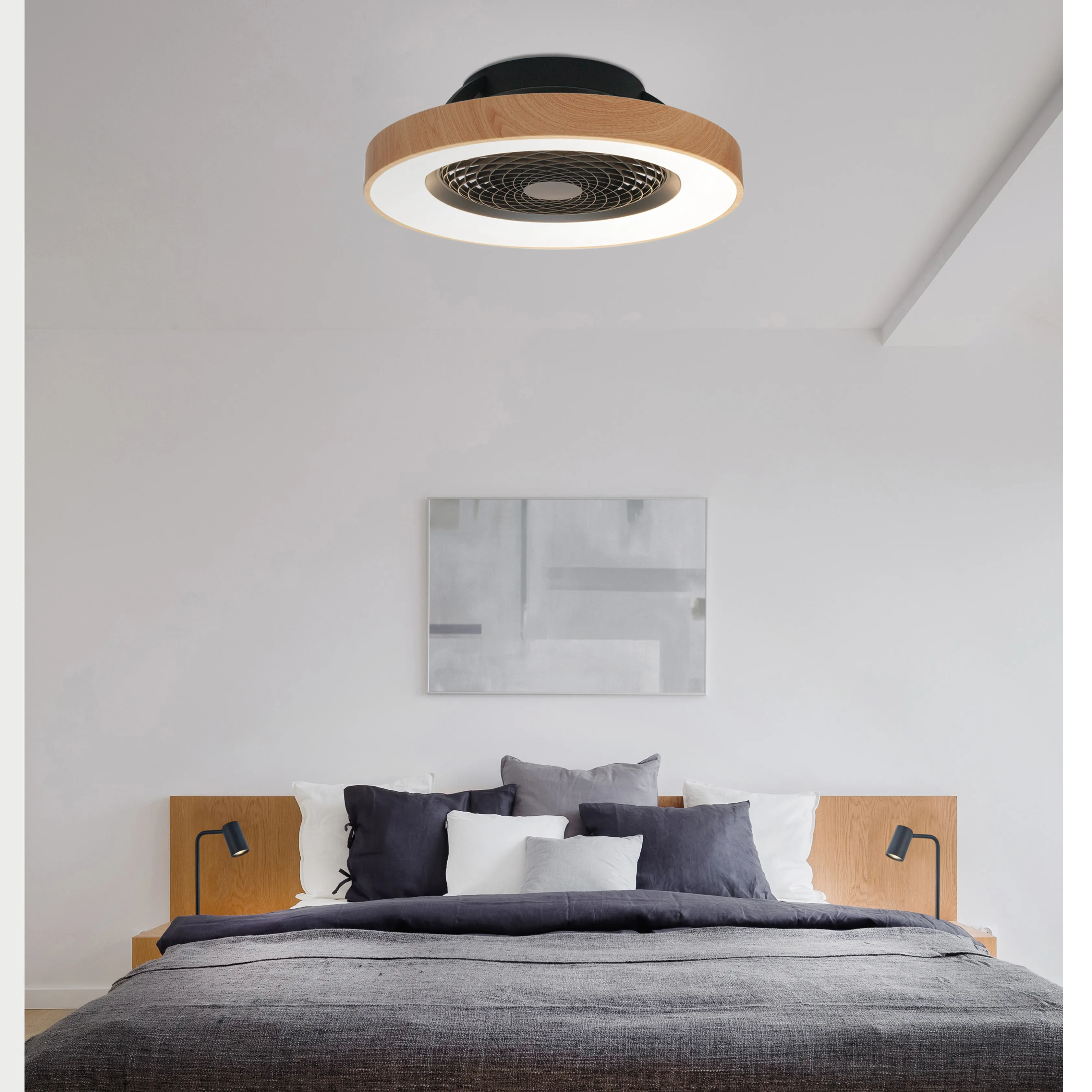 TIBET впишется в спокойные и размеренные интерьеры с фокусом на функциональности и минимализме. коллекция идеально подходит для спален, благодаря своему тихому, но эффективному двигателю. Вентилятор мощностью 35 Вт установлен за сеткой с замысловатым узором, который создает оптическую иллюзию и добавляет вентилятору эстетичности. Благодаря возможности TIBET устанавливать различные интенсивности света и вентиляции, он может быть размещен в больших помещениях, таких как гостиная или офис, кухня или игровая зона. Настройки, такие как цветовая температура и скорости двигателя, могут быть изменены с помощью пульта дистанционного управления или через приложение в смартфоне.