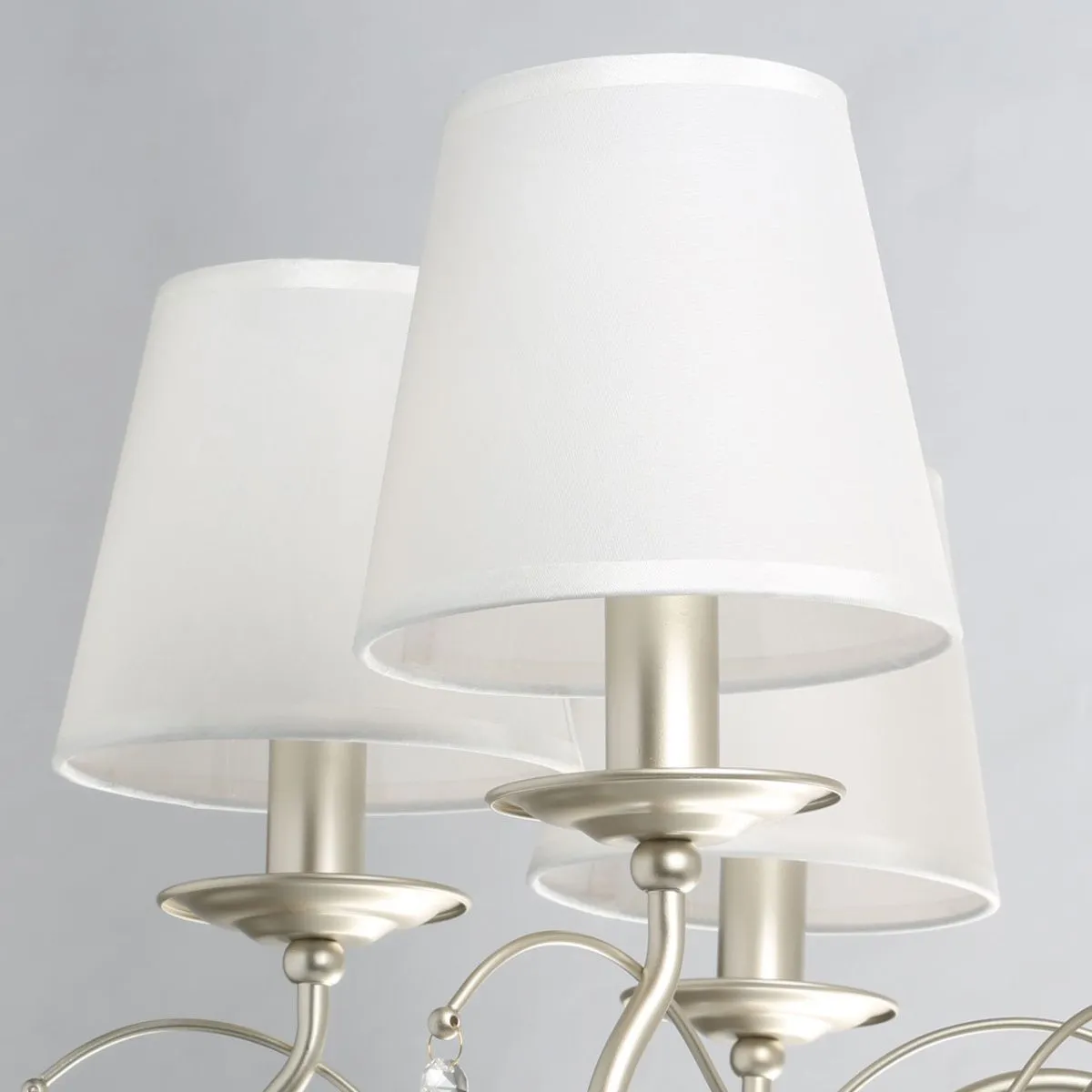 Основание/ металл/ перламутровое золото Абажур/ текстиль, акрил/ белый, прозрачный Декор/ хрусталь